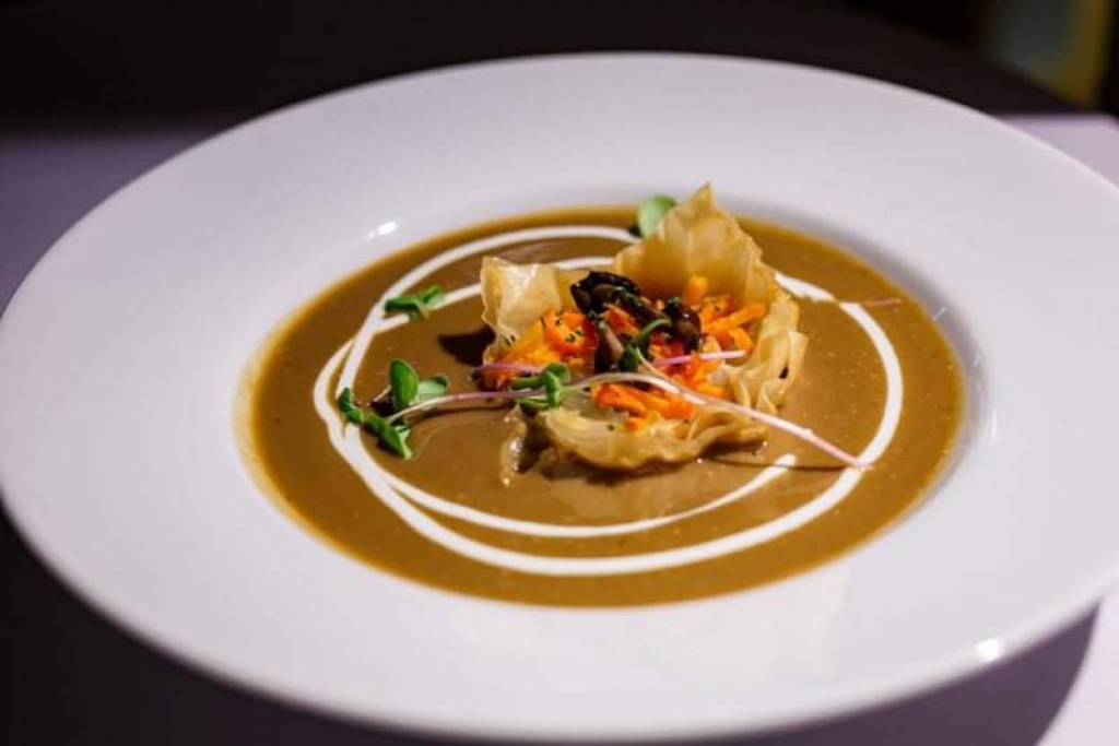 CREAM OF FIELD MUSHROOM SOUP WITH A FILO PASTRY BASKET