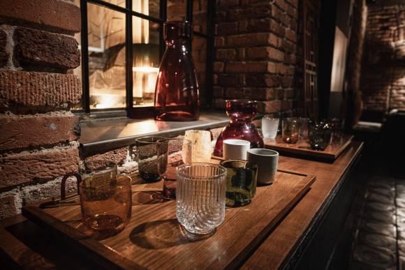 "I really enjoy looking at glass and porcelain, and I want to show their beauty to our guests. So, in the second chapter, visitors choose their own plate, glass, chopsticks, and napkins, which we will use to serve them the menu," Christian revealed. There is only one piece of each item here, so each set is always original. The space in the narrow corridor is complemented by a chess corner.