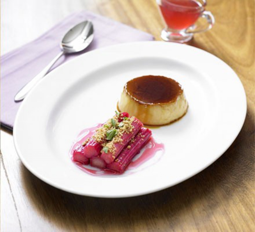 - To serve, loosen the sides of the custard by tipping the ramekin and loosening with a small palette knife around the edges. Place a serving dish on top of the ramekin and turn it upside down. Serve with rhubarb.