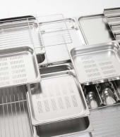 Retigo offers a wide range of various gastronorm containers. Combi steamers RETIGO Vision, holdomats use containers with dimensions of GN 1/1, GN 2/3 and GN 2/1. In our offer, you will find classic stainless gastronorm containers, full or perforated, special gastronorm containers, unusual sheets and shelving and enameled plates.