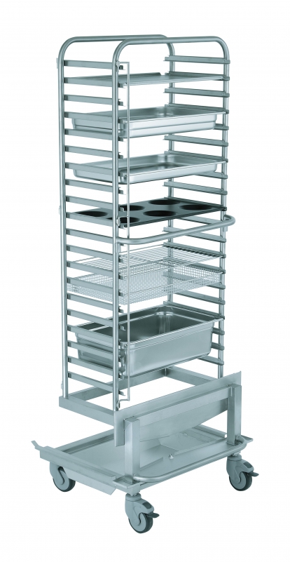 Loading trolley VO2011 has 63 mm spacing. Loading trolley VO1511 is also available with spacing 85 mm, which has 15 trays .