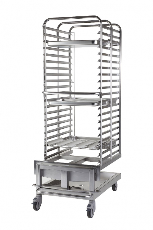 Loading trolley VO2021 has 63 mm spacing. Loading trolley VO1521 is also available with spacing 85 mm, which has 15 trays .