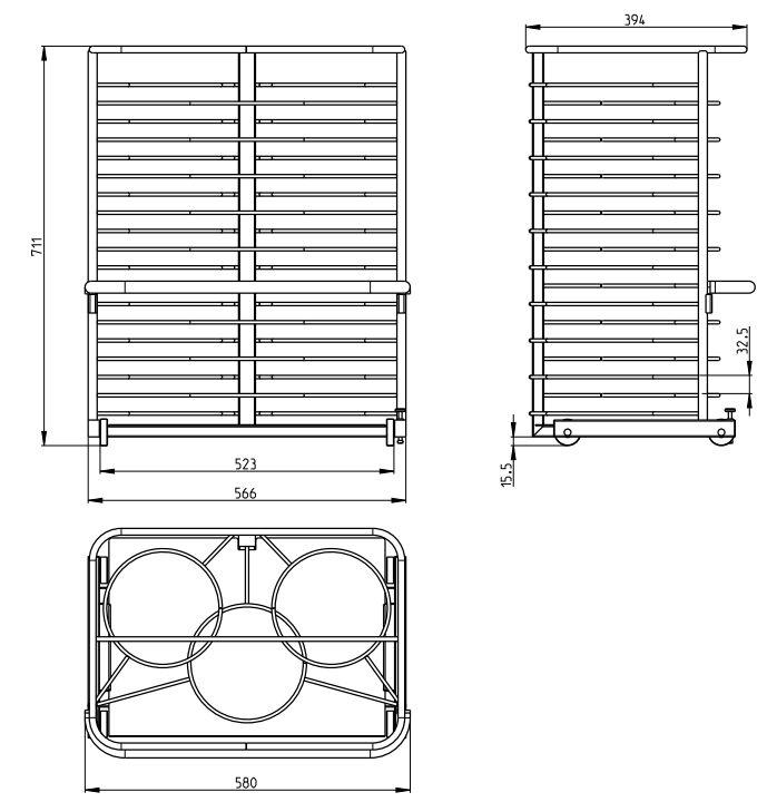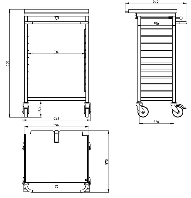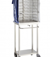 The banquet system for Vision 1011 combi steamers consists of a banquet basket KO1011, a filling trolley VO1011, and a thermal cover TO1011. The banquet basket KO1011 is available in two capacities — for 29 plates (65 mm of space between circles) or 24 plates (80 mm of space between circles). The trolley is designed for plates 280 mm in diameter. An indispensable part of the system for Vision 1011 combi steamers is a basket guide, which is different for electric and gas combi steamers. All of these components for the 1011 banquet system must be ordered separately.