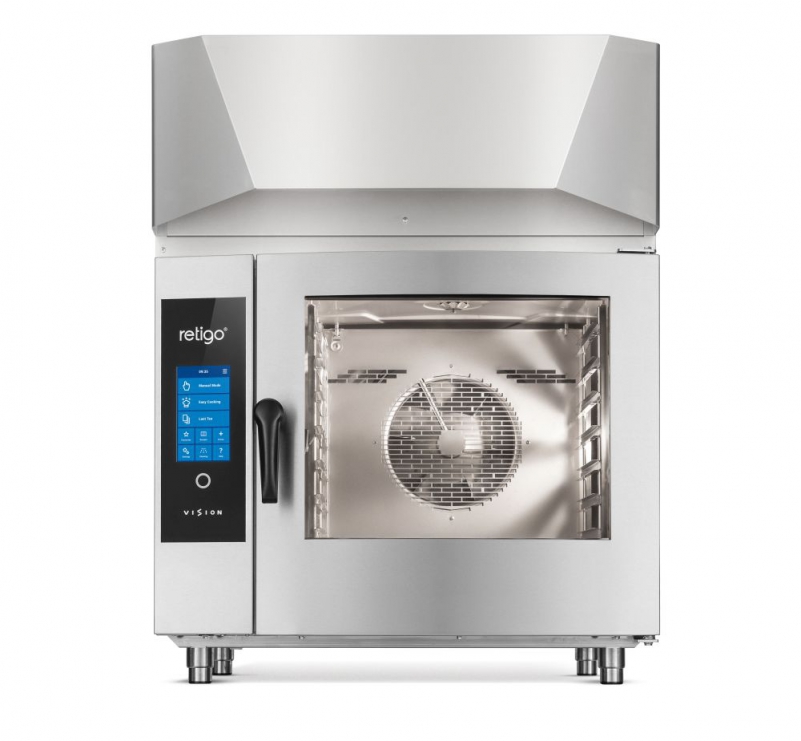 The RETIGO Vision Vent condensation hood RPH0610 is designed for RETIGO Vision 611, 1011 electric combi ovens and DeliMaster DM5, DM8 confectionary ovens. Vision Vent hood is very easy to assambly. Consumption of electricity is very low (conection directly to the 230V socket or via unit) and operation of hood is fully automatic. Vision Vent hood is not compatible with gas combi ovens.
