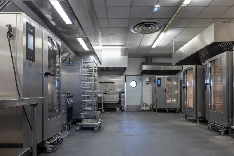 The kitchen is equipped with state-of-the-art Retigo combis, models B 2011 and B 2021, which allow smooth and precise operation even under high load. This investment in quality technology not only ensures optimal food preparation, but also significantly increases productivity and reduces energy consumption.