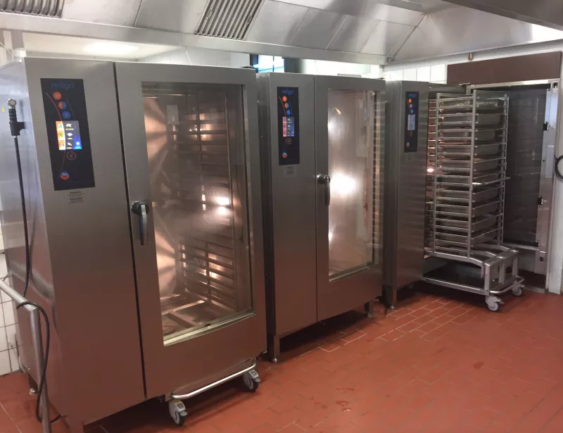 Several Blue Vision combi ovens are being used in the production - all connected to the kitchen office via LAN function. This way the varying components of the prepared meals can be uploaded as cooking program with pictogram straight to all ovens in the production. Also the important HACCP documentation works absolutely simple this way.