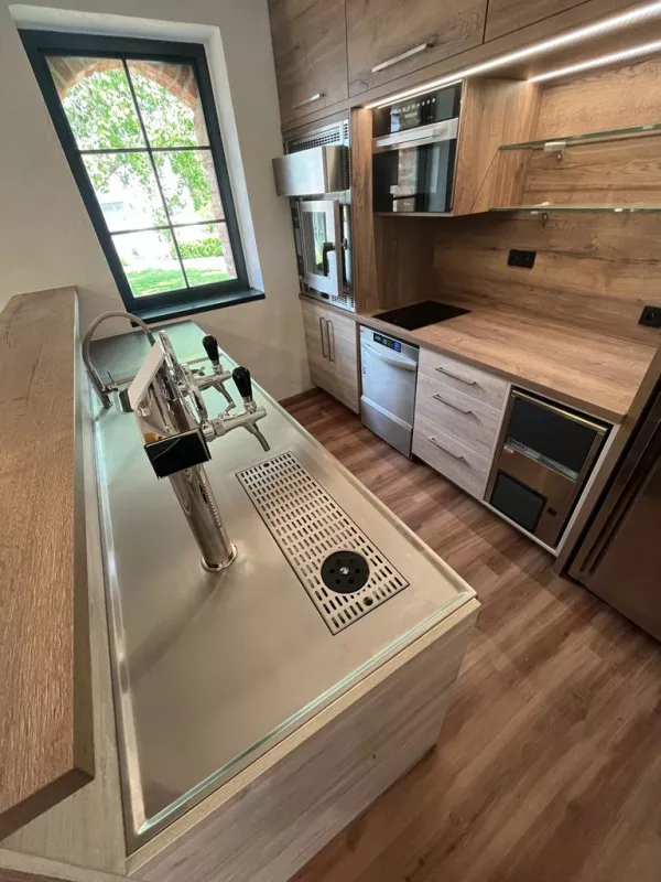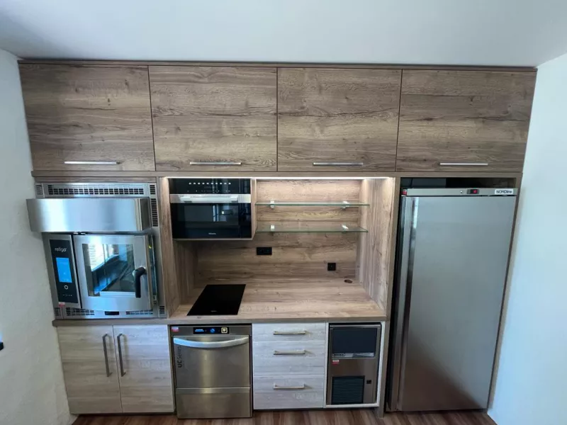 For professional catering support, there is a multifunctional barn equipped with a top-of-the-line Retigo Blue 623i combi, which forms the backbone of daily high-level meal preparation. This device enables even baking, cooking, and grilling — even at high capacity — ensuring efficiency and consistency when catering for larger events.