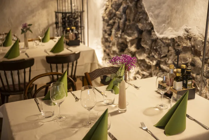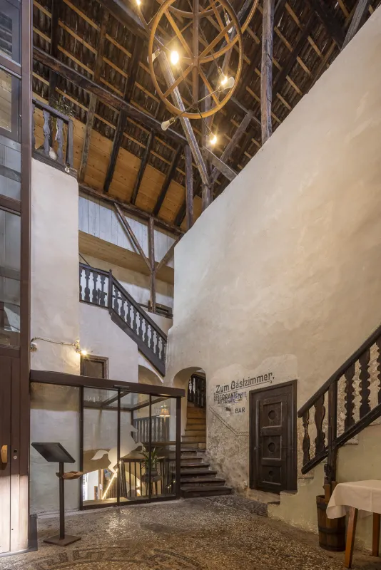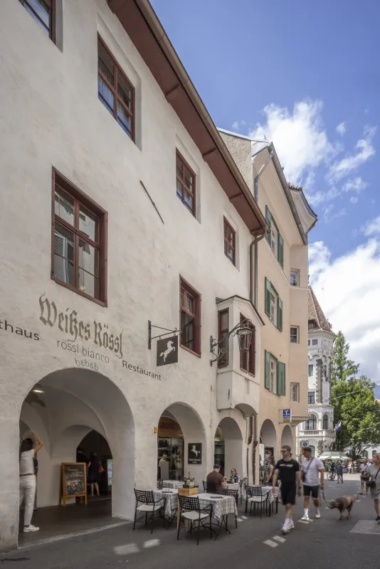 Rössl Bianco is a quaint historic guesthouse with a bistro and restaurant, located directly under the arcades of Merano's old town center. The building retains the charm of bygone times – rustic wooden beams, exposed stone walls, and detailed historical decorations create a cozy and authentic atmosphere. The first mention of Rössl Bianco dates back to 1745. Since then, it has served as an inn. Since 2018, the guesthouse and restaurant have been run by Mrs. Anna Fejes. She focuses on authentic Italian and Tyrolean cuisine and prepares dishes from high-quality regional ingredients.
