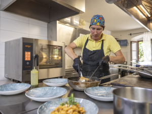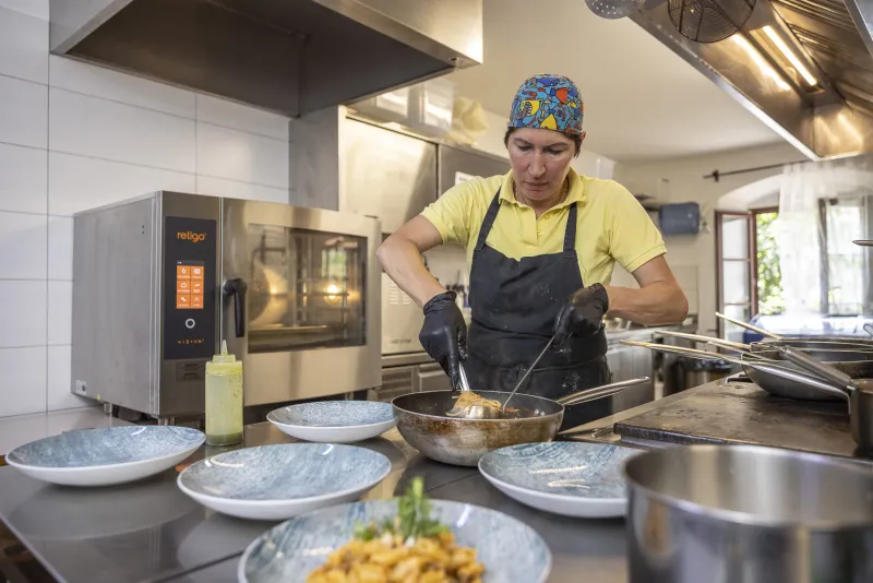 We use the combi oven to prepare stews and vegetables. We also bake meat and cakes in them. Our typical and renowned dish is baked eggplant (Melanzane al Parmigiano). Last but not least, we use it to regenerate dishes on plates.
