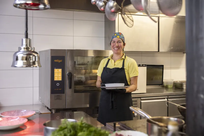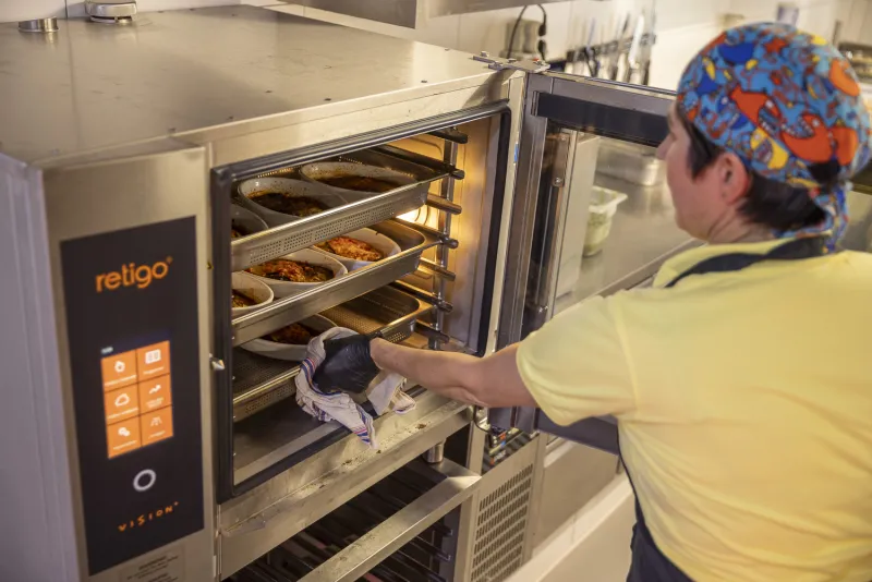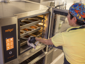 The combi oven speeds up food preparation, which is a great relief when you're serving 150 to 200 meals a day. The crosswise racks are also a big plus.