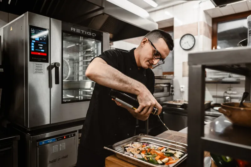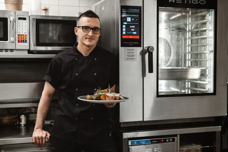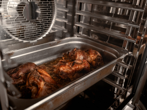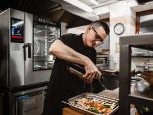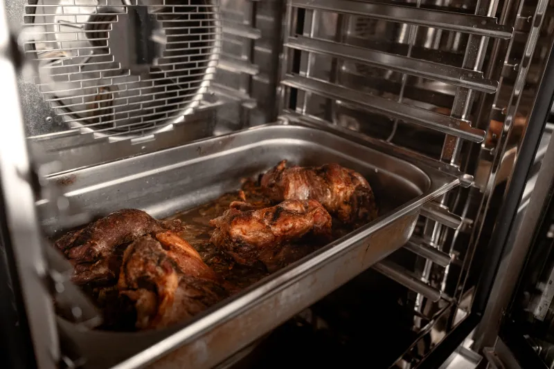 We have two combi ovens. We use one mainly for regenerating dishes, ready-made meals that we have prepared throughout the day, such as dumplings, gnocchi, and various meats. We use the other one to grill meat, which we prepare as quick meals. But we also use slow cooking to prepare meat, and steam cooking primarily for dumplings. It can be said that we use all the available functions throughout the year.