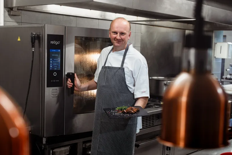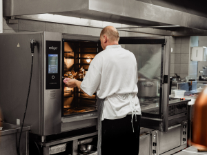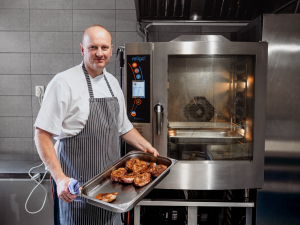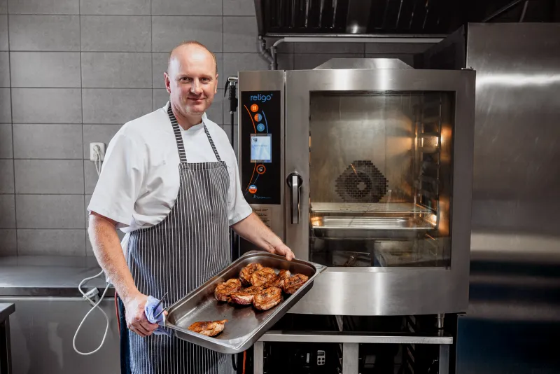 The biggest benefit is that combi ovens make our work noticeably easier. They save us physical strain; we don't have to lug around heavy pots, and they also save time and energy. We can cook several different foods together, whether it's potatoes, vegetables, or meat, we prepare everything in the combi oven at once. This saves not only work, but also energy.